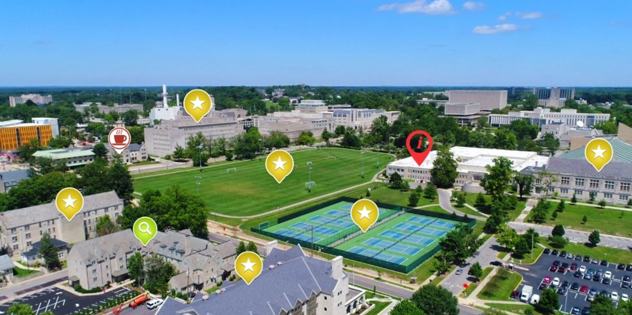 Using our app, you can highlight individual buildings and areas with an informative blurb, as well as a direct link to your website